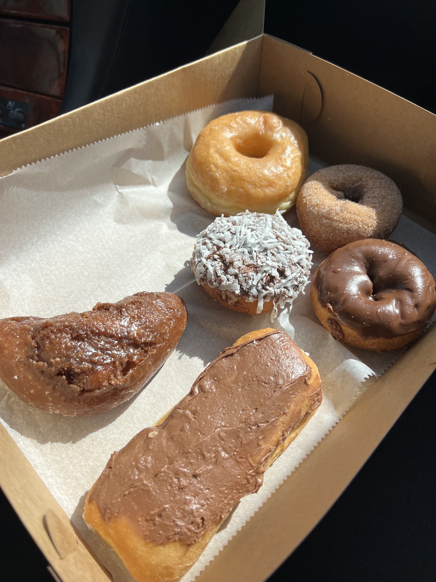 We tried a variety of donuts and here are my thoughts: The plain glazed was my favorite. It was so light and airy on the inside, raised and fried. The glaze was the perfect level of sweet. The worker who served me recommended the cake stick and this was delicious. The cake donut was a bit crisp on the outside with a soft inside and the plain glaze on it was perfect. The chocolate iced cake donut was ok. I wasnāt impressed with the cake dough here and the chocolate icing was weak in terms of real coco powder. The chocolate iced long John was yeast dough and pretty good but Iām not as big of a fan of filled donuts. The other cake donuts I tried were similarly a little dry on the inside and lacking the crisp outside I did find with the cake stick.