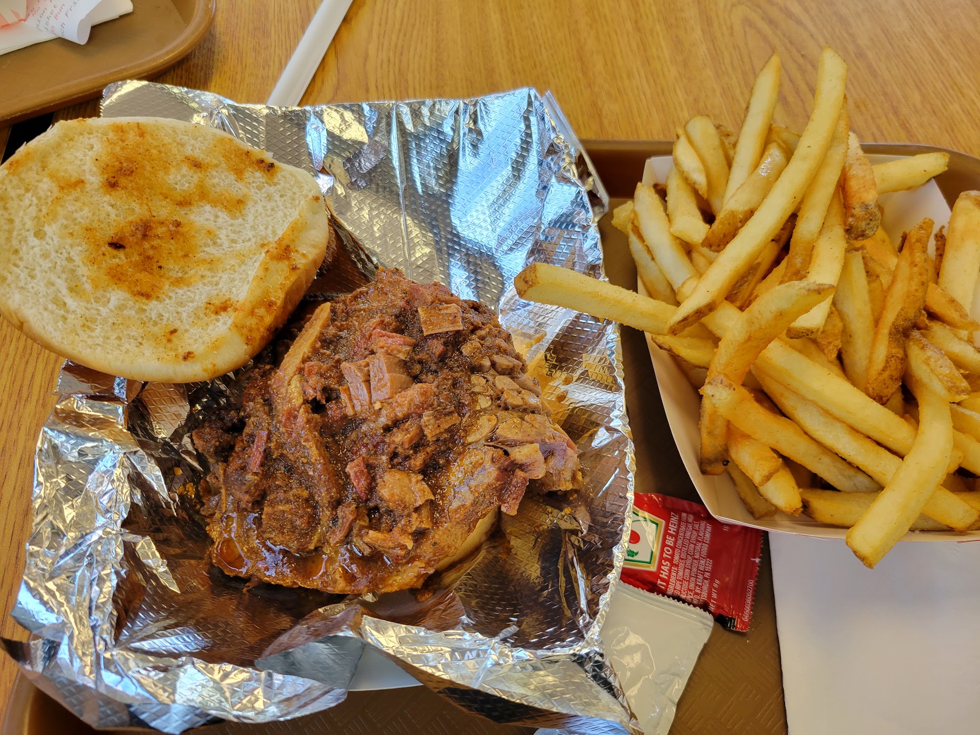 I ordered the brisket sandwich with fries. My partner ordered the pulled pork. It was not the best BBQ we've ever had.