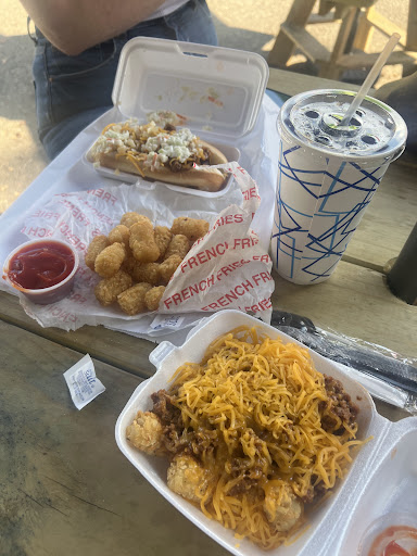 Ordered the slawdawg and tots special with a medium drink. Price was very good. Service was a bit slow. The coney/chili sauce was more like ground taco meat. The slaw wasn’t a creamy slaw but dry fine shred. Hotdog itself was a bit dry and over cooked. I would give the hotdog itself a 6 out of 10. Creamy slaw and a more coney like sauce would have made it a 10.