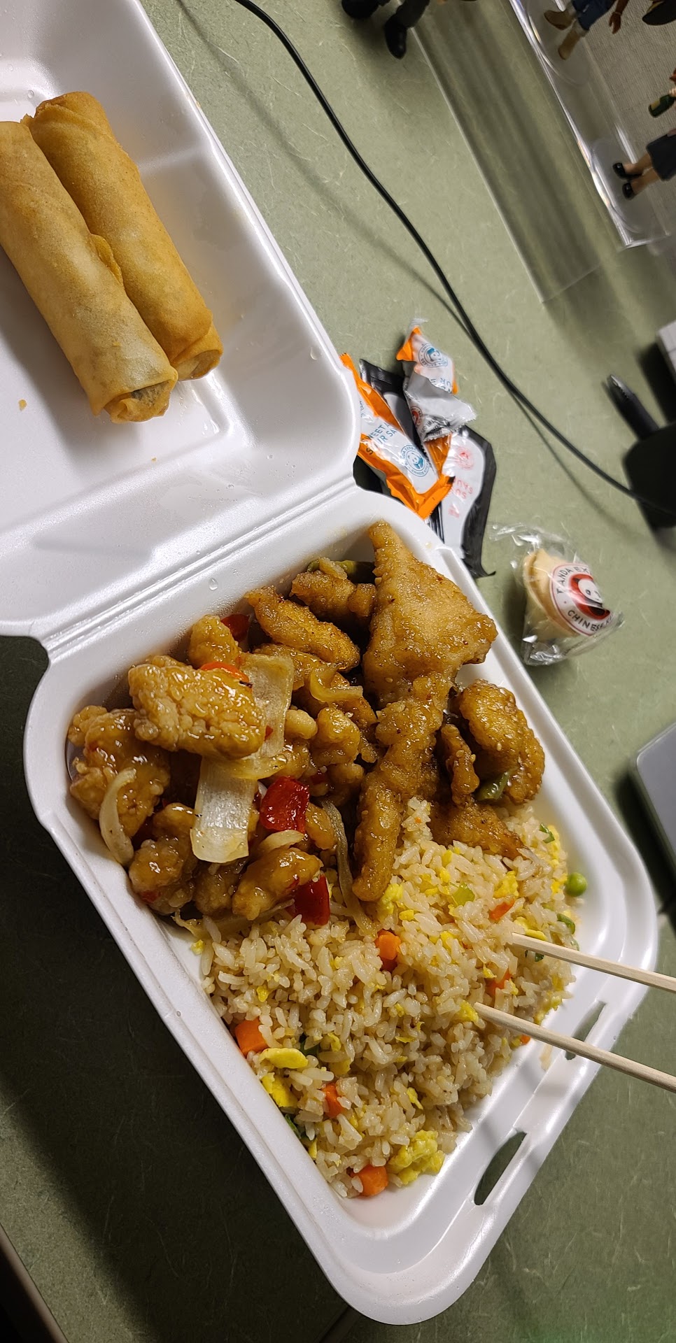 Read moreMy friends and I decided to try this place out. We all got orange chicken with fried rice or chow mein. I ordered Kung Pao chicken in addition. The orange chicken and Kung pao wasn't ready. My boyfriend ordered the bigger plate and they only gave him a regular plate. When we all got the orange chicken, it tasted like French fries dipped in orange sauce. The chicken was barely in the pieces and was extremely dry. The fried rice tasted like cardboard and was extremely dry. My friend's chow mein was extremely dry and bland as well. They never brought out the Kung Pao that I ordered. Then as we looked at the receipt, we saw they did a double of orange chicken for me, but only have me 1 serving. I do not recommend this place. This is the first and last time I...