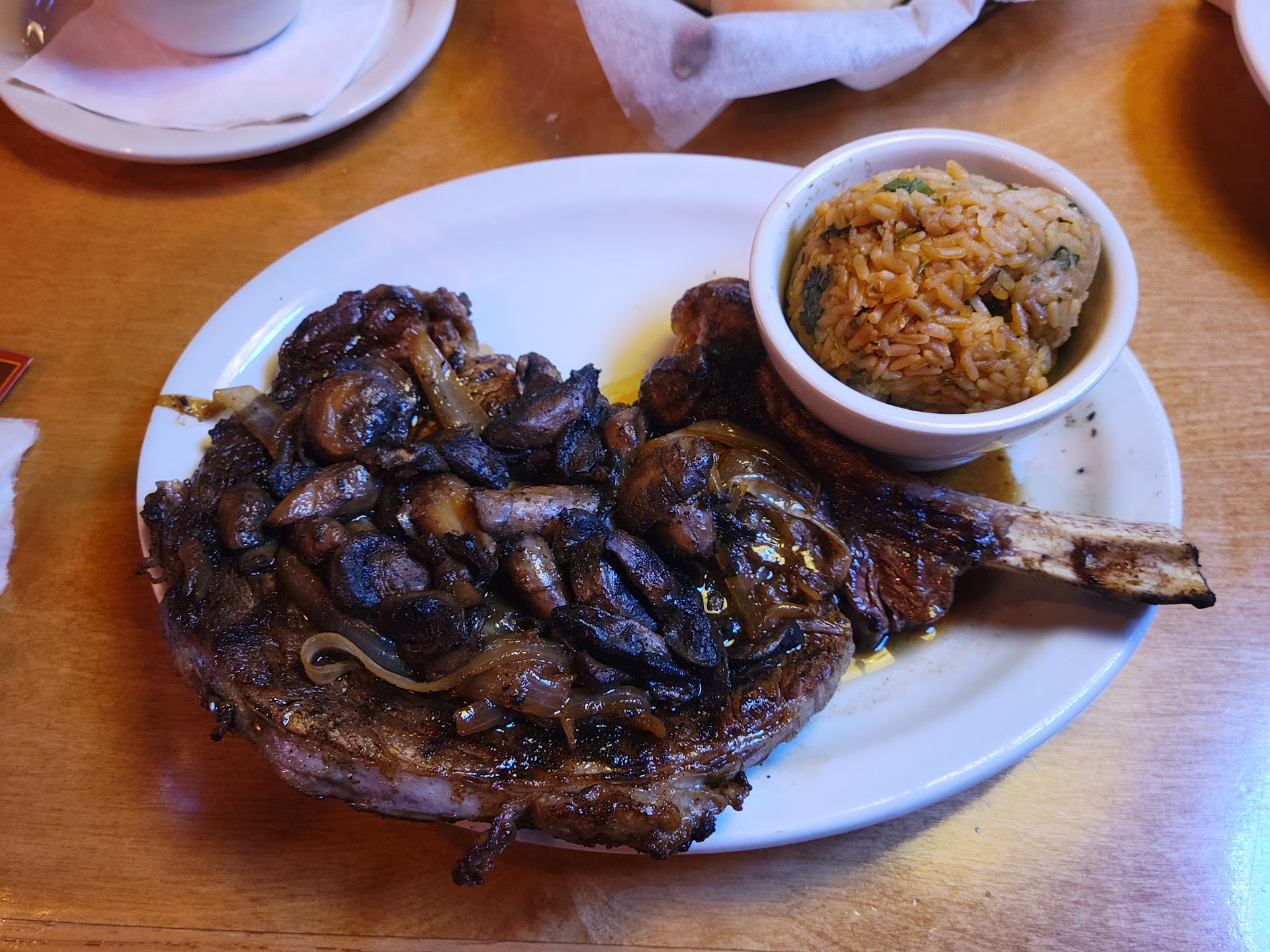 As we arrived and greeted by the friendly host staff, I was excited to enjoy this establishment, but then it began. We were seated at a tiny booth, (as myself and the other gentleman I was with are not the smallest of people) so we squished in and browsed the menu, Trevor came and greeted us friendly, took our drink orders and gave us some time to look over the menu. He arrive back with our drinks, and took our order and swiftly got the ball rolling. The unsweetened tea could only be described as brown water, ( not sure if it was the stuff they served at Camp Lejeune) as our meals arrived I thought to my self this looks so good and I’m starving! As I cut into my steak I was greatly dissatisfied by the effort put forth by the kitchen staff, (I’m at a steak house they surely should know how to cook a steak) medium well….. and I ordered medium rare. As my friend cut into his steak that he ordered medium, only to be served shoe leather. Who the hell would eat a steak well done at a steakhouse no less this should be considered a sin. So we flagged Trevor down and he apologized for the mishaps and we assured him it wasn’t his fault the the kitchen staff was incompetent and need to learn how to properly cook a steak. Round 2! The steaks are back and I cut in to it just to find it raw and cold in the middle……… and my friends steak arrived back as medium well, at this point we have figured out they really have no clue how to cook a steak. As we are starving he choose to eat his but I still was not going to eat a raw cold steak. So Trevor once again returned it to the incompetent grill attendant to be thrown back on and burnt on the outside. As Trevor returned with the burnt meat and cold potato I cut in and found it over cooked again at this point I was to hungry to care and just ate it. My other disappointment was we had no visit from a manager or any form of team lead to ask us how our dining experience was, I think they were avoiding us the plague, too embarrassed by the lackluster people who are unqualified to use a microwave that they call their kitchen staff, or maybe the just don’t care. Either way I will not be back and I highly recommend spending your hard earned...