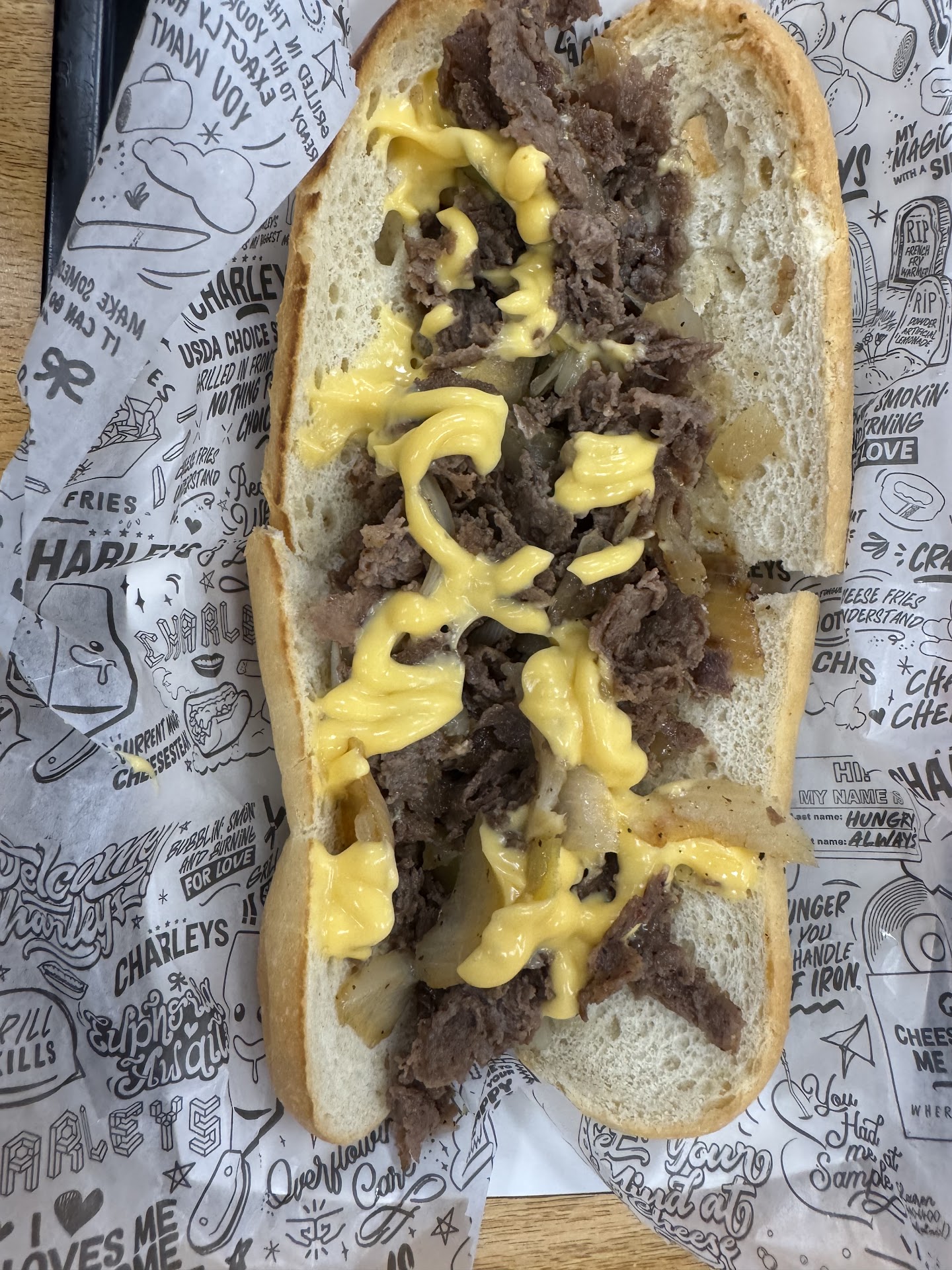 Read moreWe had stopped by Walmart to picked up a couple of things and decided to grab a bite to eat at Charley's before leaving the store. The the service was good. We ordered the 10 wing gourmet combo and the original cheese steak. We order the wings 5 flats with teriyaki and 5 drumsticks with Thai heat. The wings were cooked just like we like them, nice and crispy, I hate ordering wings and the come out soft and you are left wondering if they are fully cooked. My wife loved the flavor of both, I was looking for a little more heat to the Thai heat so I added some Franks hot sauce, that put the flavorto more of what is was looking for. I would have called the flavor sweet heat not Thai. The fries came with cheese and bacon. The flavor was good and the fries were hot but you can and cheese and bacon to anything and it would probably taste good. The steak and cheese sandwich was not up to par. Was dry and did not have as much meat and cheese for the $8 for the small that it cost. It was a little pricey for what we got but overall everything was ok. The one thing that they really need to work on is keeping the drink station and...