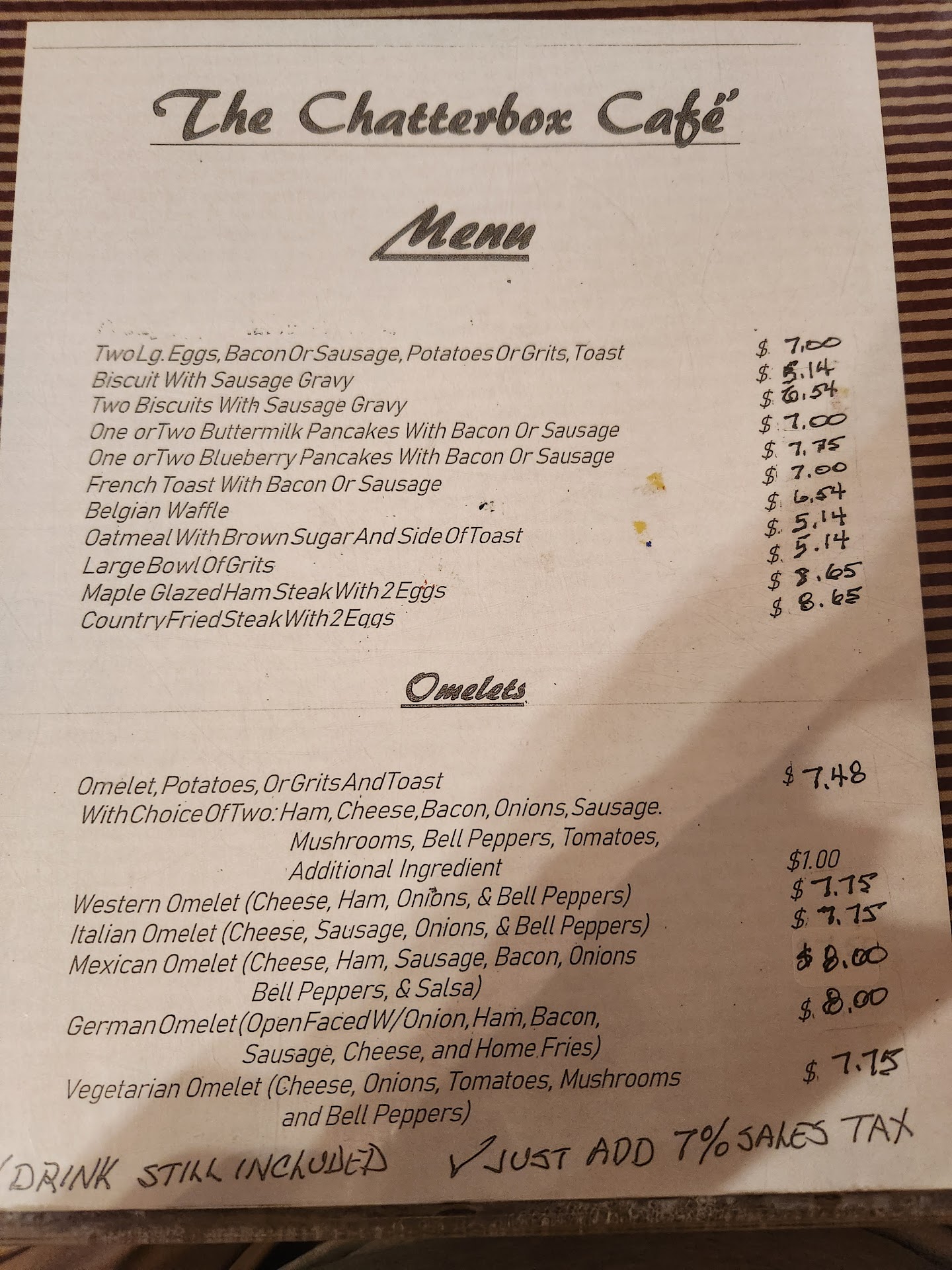 What to say here about The Chatterbox Cafe, what to say? Tough choice whether to give 4 or 5 stars, here is why... It's no frills, no thrills, no fuss, nothing fancy; just good HOT breakfast grub.