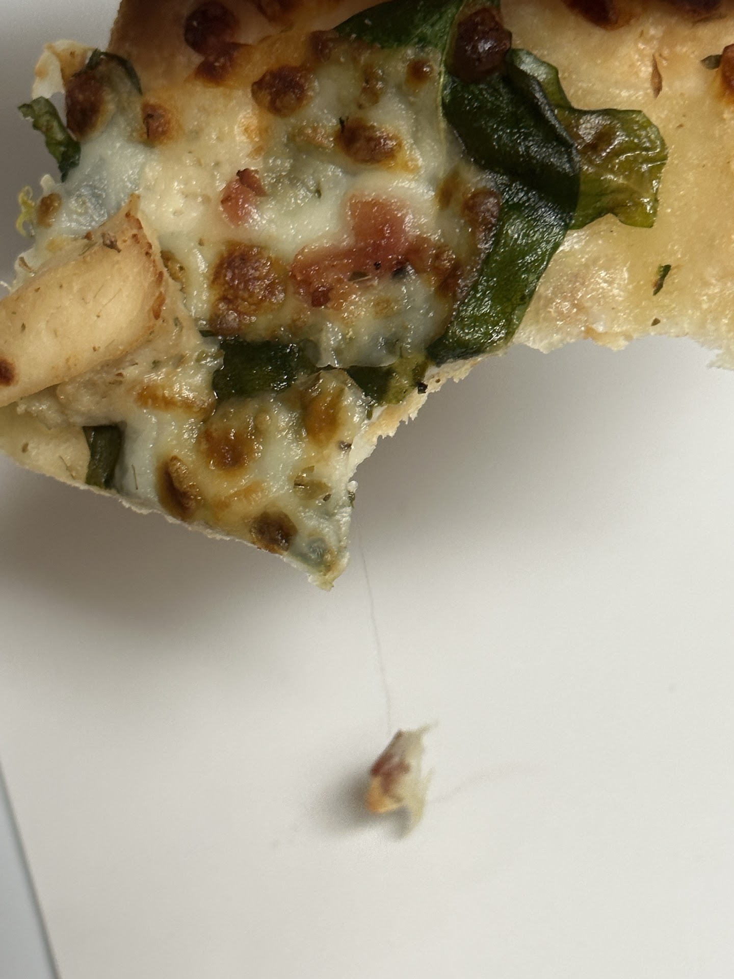 As you can see while it's not exactly burnt, it IS over cooked. Impressive because that takes some actual effort with a chain oven to push the pizza back in.