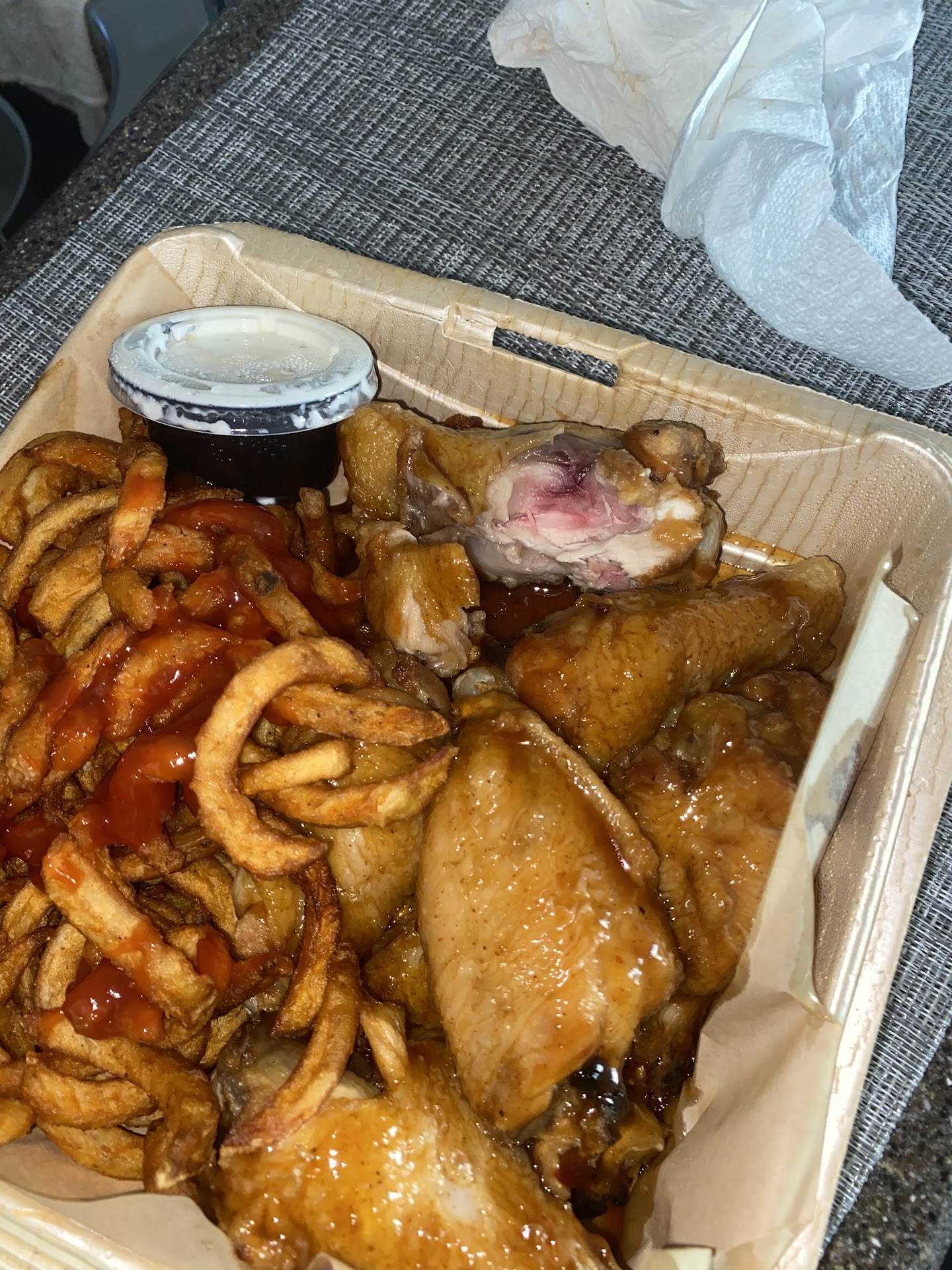 Had just wings for the first time last night, and I won’t be going back. My boyfriend and I both ordered boneless wing combos, and both his and my wings were barely sauced and the fries were cold and stale. There was maybe one or two wings that had a lot of sauce on it, but they would be like super small pieces. My boyfriend nor I even finished, because we’re just not gonna eat cold and stale fries and to eat bland wings…not appetizing. The amount of money we spent, could’ve been spent somewhere else getting better quality food. Ordered...