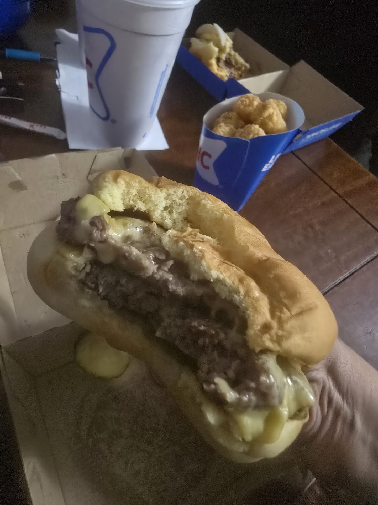Read moreHonestly it's hard to eat here. It always takes forever to get my food and the timing is always wrong so when I get something really fresh that took 30 minutes there is sure to be something not fresh at all. Everytime I go it's always this way. I wish it was different cause I enjoy Sonic but this one is impossible to eat at if you want to be fast. The cold items do get to you fast and taste great but it's the Breakfast Lunch and Dinner that make it feel like the wait isn't worth the food. They are very stingy with free water when I asked and could only give me a bottle one time that they charged me for by as much as they could it seemed like. Then other times they give you something that required a fork and don't include it and rarely put napkins in for everything. The business is certainly cutting every corner it possibly can and it's at the expense of the customers happiness. I've been to a lot of other Sonics and I have to say I've had a much better experience then this restraint. It's a shame too. I really enjoy Sonic and I can't say that enough. Hopefully they can turn it around but it's been this...