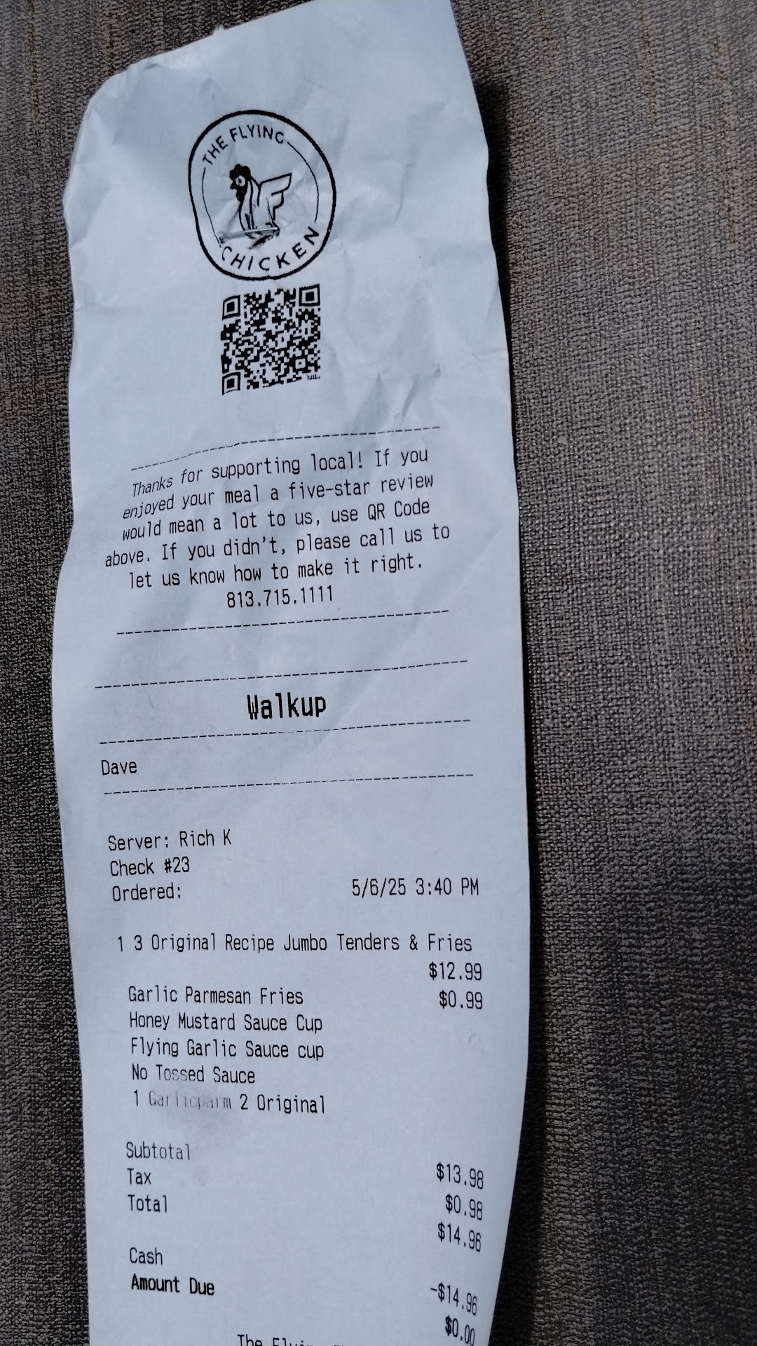 DO NOT EAT HERE. The Flying Chicken is a total scam disguised as a family-owned “local gem.”