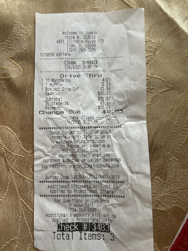 Consistently terrible customer service. I love Dunkinā but wonāt be going to this establishment anymore. The young staff is awesome often rude and not welcoming and I have had issues with getting the wrong items on more than one occasion. All of this compounded with the awful experience I had today has lead me to writing a review and giving up on this Dunkinā. I had placed an order on the Dunkinā app (which needs some work too) when my mother went to pick it up on her way over they told her that they didnāt have he order. She showed them the confirmed order from the app and they said ānope not here maybe itās another Dunkinā locationā she showed them the address on the order and the cashier told her it wasnāt that Dunkinā. My mom exits the store and checks the address sure enough she was in the right location. The cashier didnāt even know the correct address. She went back in and told the cashier who then said āoh I found it, it just came through ā wrong! It had been well over 20 minutes since I had placed and confirmed the order. She then proceeded to tell my mother it was her fault for going in the store when the order stated she would pick it up in the drive thru. Really?!? She went in because the line was extremely long in the drive thru. They start making the food now my mom is stuck there waiting for the food (which defeated the purpose of ordering ahead of time). I had also asked my mom to get a receipt to make sure I was charged properly for the 2 for $5 sandwiches, which is a special if ordered through the app. They did not give her a receipt so when she asked they told her that she doesnāt get one, she just gets āthe sticker on the bagā. None of this sits well with me and sadly this is the terrible service I have started to expect from Dunkinā. I am very...