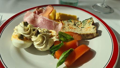 I had: Starter: Juliana-chopped tomatoes with arugula leaves, alongside with mustard-base filling eggs, cheese and cold meat selection, and carrot-and-vegetables shuffle. Main: Bacon-wrapped grilled chicken, rosemary 'alla parmeggiana' chopped potatoes, and honey-savoured sweet potatoes. Dessert: I will be charged for Flan-lover, and I will be found guilty. I had two, because you can serve yourself as much as you need.