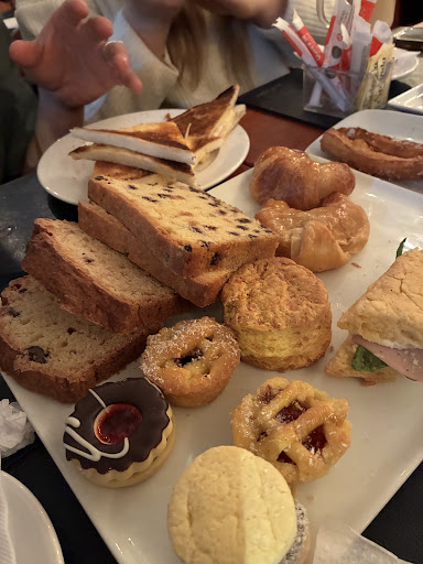 Finalmente, después de más de una hora, nos trajeron parte de lo que faltaba, pero no los scones, el budín ni las porciones de torta. Consultamos a la moza y nos explicó que ya no tenían más de esos productos, y que podían “compensar” con una medialuna rellena. Algo que nos resultó insólito, considerando que habíamos pedido una merienda completa y no nos avisaron que no tenían más. También notamos que a la mesa de enfrente les faltaron cosas en su merienda para 2, pero en su caso la moza no les ofreció ninguna compensación u opción, simplemente les cobró igual.