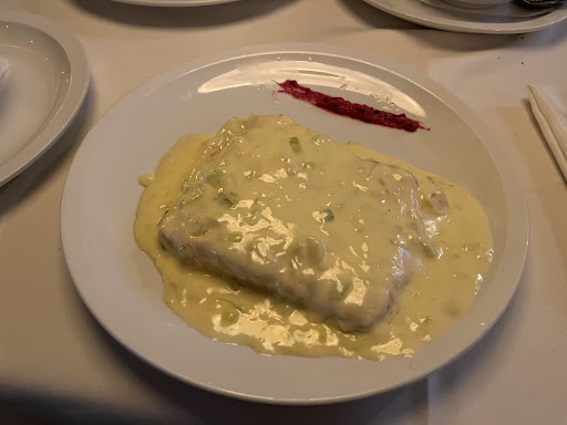 My father and I recently dined here and it was a delightful experience. He ordered the steak, and I had the salmon with leek cream, both accompanied by side salads. I chose the salad with avocado, which was a nice touch. The salmon was cooked to perfection, and my father absolutely loved his steak. Portions were very good.