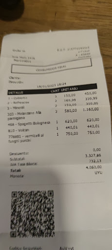 Read moreAntes de visitar el lugar (que no conocía) leí muchas de las opiniones como de costumbre hacemos la mayoría, obviamente había muchas positivas y también negativas, porque sobre gustos no hay nada escrito. Nunca pensé que nuestra experiencia iba a ser una de estas últimas. Previamente avisé que la idea era festejar el cumpleaños de mi esposa con una cena, y que ella pudiera disfrutar las opciones sin gluten que ofrecían. Tenían un super lugar esperandonos, en la esquina más oscura del restoran, sobre la reserva de vinos donde cada 2 minutos tenía un mozo arriba, y con la barra de la caja a 1 metros....hermosa la ubicación!, la verdad se esmeraron mucho para haber reservado casi 2 días antes. La calidad de la comida no nos gustó para nada. Pedí uno de los platos recomendados y tradicionales que los usuarios halagan, (papardelle alla carbonara) y no le doy ni un 3 en la escala al 10, de todo lo que decía que tenía, había muy poco o nada, cero panceta, cero parmesano, plato frio, totalmente incipido. Trabajamos años con gastronomía y organización de eventos a muy buen nivel, y me parece que son conceptos básicos para un plato y un servicio (para que no argumenten que no hay criterio en la opinión),y el nivel no lo da el lugar, lo da la cocina y los empleados. El trato de la moza fué cordial, tuvieron algún gesto sobre el cumple de mi pareja, pero me hubiese gustado mas que la comida tuviera un poco mas de cariño, ese hubiese sido el mejor gesto. Ni cerca la calidad de la comida para lo que esperaba de este lugar que dice ser, el mejor restoran de comida italiana de Montevideo (habria que preguntarle a un cocinero italiano). El plato de mi esposa (apto celíacos) eran fideos de paquete, totalmente incipidos también, parecían el primer plato de pastas de una escuela de cocina para niños (con perdón de los niños). Quizá no tuve "suerte" con la elección del plato, o creo más bien del lugar. Definitivamente, NO LO RECOMIENDO...y menos si quieren festejar algo, y...