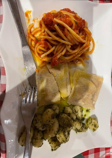 COMIDA:La comida está bien ahí, la mozzarella exquisita y platos más o menos abundantes.Pero los tallarines son de los duros de paquete, no son los frescos de casa de pasta. La ensalada caprese 🥗 y tenian literalmente dos hojitas de albahaca 😳. Tuve que pedir que le pusieran más. La comida no es nada del otro mundo. ATENCIÓN: Fuí 3 veces por distintas razones (ajenas a mi) y tardan en servirte como si estuvieran amasando las pastas y la otra punta de Mvd. Tardan un montón las 3 veces que fui y había muchas chicas charlando en el fondo. Ya me preguntan y digo, no gracias. Porque se ve que no es una falla de algo de un día puntual. POSTRE: Es un restaurante italiano y no se entiende como el tiramisú que ofrecen está CONGELADO en el centro (una roca) y descongelado en el microondas. AMBIENTACIÓN: es mezcla de resto onda italiano tirando a fonda. PRECIOS 💵 son bastante caros. Pero al fanático de las pastas 🍝 cualquiera fuera y que le guste los manteles cuadrille rojos . Adelante! Ese...