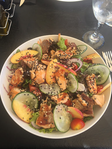 Read moreReally good food in a nice setting on the beach. We ordered a salad with salmon and the fish of the day with broccoli gratin. Fish of the day was cooked perfectly (although a bit crispier would have been even better) and the salad was nice and refreshing. Broccoli gratin was ok, a little too much cheese and the broccoli was pretty mushy. All in all pretty decent food, and a decent price (for...