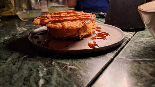 Pedimos 3 tapas para compartir, mi favorita fue la berenjena con espuma $280 La descripción de la página es la siguiente: espuma de quesos, salsa de tomate, tierra de albahaca, papel de berenjena. Fue increíble, riquísima y realmente parece una espuma de queso! No era un plato caliente como esperamos pero igual riquísimo.