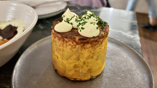 Also the Tortilla de Papa, also sublime, described as potato, pasteurized yolk, caramelized onion and lemon mayonnaise. $410