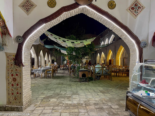 Read moreWe arrived late at night to Bukhara and went out straight for dinner. A place where we 1st wanted to go was busy so kept going and arrived here at Art restaurant. I expected this to be tricky cafe, but we were too tired to continue. There were only us in the whole restaurant. We ordered a bottle of terrible white local whine for 17$ 250gr of local vodka for 13$ and 2 portions of vaguri (lamb with fries) which was over fried and hard as result (( The total amount we paid was 64$, and of course as all cheaters do here, is they do not accept credit cards. Only cash, that lets them cheat and avoid tax payments. Please do your best and find the strength to run away...