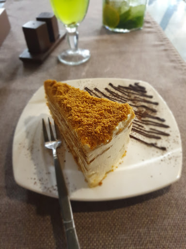The next night was less crowded so the food came out quicker. I ordered the shrimp cream pasta with mushroom soup, mint iced tea, and honey cake. Again, everything was delicious but special mention to the honey cake. IT WAS SOOO GOOD, probably one of the best cakes I had in my life! On both nights, the service was excellent and the servers were professional. Definitely, the best restaurant in Bukhara, just don't order the...