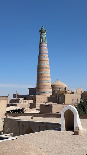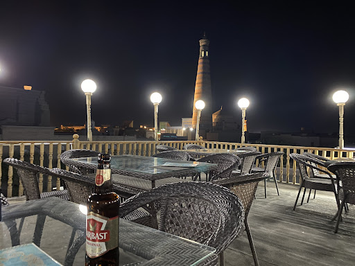 The place is even nice, located on three floors, with a rooftop with view on the southern part of the old city, not the best part and with residential houses around. There are however some refurbishment making many surfaces covered of dust ( the table glass was clean but the bottom surface where you could but a book or the women’s bag) was extremely dirty. However, for sure they will solve. More unpleasant is the absolutely lack of understanding of English that in city like khiva is a problem: we asked 1 Manti and 1 shashliq each (we were 2 people) and we received only one to share… very expensive even the bill: 1 manti (6 pieces), 1 shashliq, 4 beers and 1 bread 220.000 Sums, with beers quoted 30.000 each bottle of 66 cl…. The highest prices I met in all Uzbekistan from Tashkent to Samarcand to Bukhara. The bill was made on a piece of paper and not from a official machine, the idea that this could have been a tourist price leave us some doubts…. Quality of food? Good and tasty. So: you can choose this for your lunch and dinner, maybe pay attention on prices and take a Russian or Uzbek translator with you if you want to eat what...