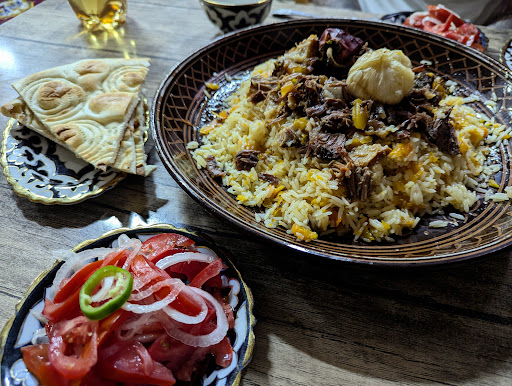 Read moreThis was hands down the best plov we had during our three weeks in Uzbekistan. The staff was very friendly and welcomed us despite being the only tourists in the evening during Ramadan. The portion was massive, we could hardly finish it, there was a lot of meat unlike other plovs we had had in other cities. The roasted garlic was a delicious addition. You must go here in you’re in Khiva. We ate here twice and I will be thinking of their plov...