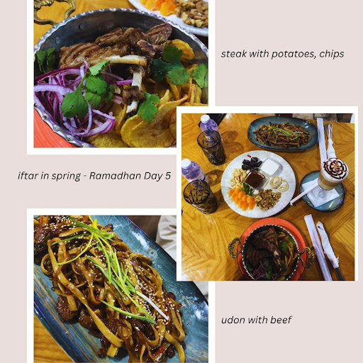 I frequently pass by this location, and the atmosphere is always in line with the current theme. They hang love balloons for Valentine's Day and change the entire curtain set to pink; in preparation for spring, they cover everything in flowers. They are very successful at drawing us in with their décor changes, which I always look forward to