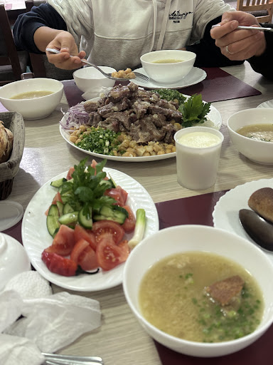 После зимних каникул возвращаясь Ташкент, зашли в обед в наше любимое место. 03.01.2026. Место хорошо расположена у дороги. Все внутри чисто и аккуратно. Есть умывальник, жидкое мыло и салфетки для рук. Летом , весной или осенью при хорошей погоде можно сидеть на улице. Но, на улице было холодно сели во внутренний зал. Столики уже сервированы. Быстро обслужили и принесли еду , чай и салаты. В косушках суп , очен вкусный и в меру жирный. А в большой тарелке принесли нухат шурак. Нухат хорошо приготовленный, тает во рту, по соли идеален. Мясо тоже хорошо приготовлен, мягкий. Чай не в пакетиках, но вкусный. Хлеб половина черной лепешки, и катлама патыр . Хлеб и патыр тоже вкусные. Взяли свежий салат и кефир. Салат нужно было посолить, вкусно. Кефир, натуральный, немного кислый. Счет вышел на 4 человека 350.000 сум. В общем от места только положительные эмоции, рекомендую