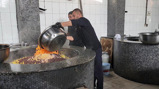 I believe this is the place to visit when in Uzbekistan or Tashkent specifically, else you visit alone or if you are with a tour you will be brought here by the tour group. It's really an eye opener here you can see a big main kitchen where the staff will be hard at work preparing the food that the customers will it. Basically its just 1 main dish which is the Plov and probably with different kinds of meat. When I arrived alone, I was at a loss of what to do other than visiting the kitchen and catching all the live action. I walked to the counter wanting to order food then I was told I had to be served with order taken by the waiters and then make payment only after the meal. So I walked back to the dining area and waited for someone to notice me and bring me to an empty table. I didn't really know what to order other than the Plov, and I didn't know what meat to choose I just let the waiter made the decision. He only asked me if I wanted drinks and salad. Quite surprised to see bread being served as well and they really gave me quite a lot of bread. I knew I couldn't finish and didn't want to waste so I asked for just half. I cannot understand the habit of the people here to eat bread with rice. I think the locals are used to it they will go hungry without eating like that and for me it was quite a torture as you feel like puking because it can be very filling. Nevertheless, the Plov was good and I was told there was a slice of horse meat in there. Great first experience of trying horse meat. It was quite an enjoyable meal and also witnessing the spectacle in the kitchen. There are 2 areas to dine, either outdoor or air-conditioning in the indoors. I would also recommend visiting this as this is not something common you see when you visit...