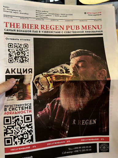 Absolutely grotesque place. Food is delicious but the crew, as usually in Uzbekistan, is overactive and takes things from your table even faster than you can figure out if you're done or not. The concept should apparently resemble the traditional beer pubs in Germany but actually it has nothing in common with the German or just European beer culture and you càn hardly find any real German food in the very very long "German-cuisine" carte. The cherry on top of the cake is an egomaniac lumbersexual guy, seeming to be the owner of the restaurant, whose face "delights" you on almost each and every artefact to be seen in the pub. And the process of payment, if you want to take advantage of their loyalty bonus, is quite long and complicated, and finally due to their system failure impossible. Explanation: "it's new". P.S. No service in English,...