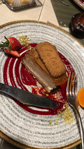 But the real surprise? The Lotus Biscoff cheesecake—decadent, creamy, and beautifully plated with strawberry and orange garnishes on a swirl of berry sauce. It’s a dessert worth coming back for alone!