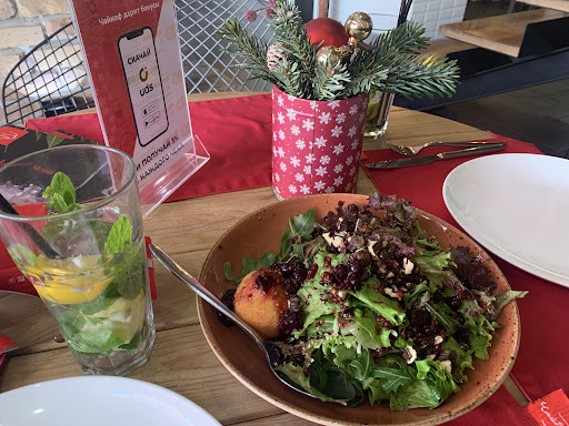 Read moreFood is really good. We had soup , zucchini pancakes and chicken pate. The waitress was very friendly ( Tamila). Unfortunately, the restaurant has big problems with payment. It took long to bring bill . We asked the manager about it , our waitress was busy , no problems with her . We paid with cash and it took even longer to bring change( 45000 sum). After 20 minutes asking staff to bring back change they finally brought wrong without full bill. And another extra time… The just put money in the bill with no apologies from waitress or manager.