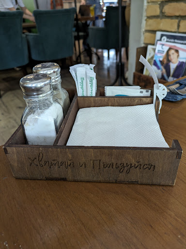 My favorite café in Tashkent due to some reasons: 1)Super friendly staff ,always positive 2) delicious! Everything I've tried here tastes super and looks nice. 3)Cozy interior,pleasant music(!!) and nice lighting. Both outside and inside feels cozy 4) DETAILS! Funny writings on sugar,on walls ,funny menu,nice tableware and ,of course ,pillows. Toilet deserves special compliment. Cool idea! 5) Good variety of dishes and drinks Not soo much but for me it's better less,but worthy. There is even hookah in the menu 6) Affordable prices. And price=quality. It's VERY RARE in Tashkent !!!! I think it's one of the biggest Pros of Podushechnaya! P.S. I love breakfast offers and salads here. Matcha tastes also amazing (rare in Tashkent). Syrniki taste also amazing! I recommend you to put some detox drinks and maybe put avocado in fish sandwiches (even if...