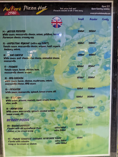 If you can excuse the cheese crisis and ‘interestingly’ priced pizzas (about 1700VT on average), Pizza Hot is a delicious and pleasant experience....