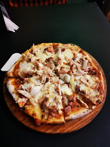 Buen sitio para degustar pizza y hamburguesas a buen precio, tuve la oportunidad de pedir una pizza de pollo con todo y costó 8000 Pesos colombianos, hay una opción en 6000 pesos pero con menos ingredientes, esta promoción incluye un refresco, la pizza estaba buena y primera vez que la pruebo de pollo, su masa crujiente, volvería...