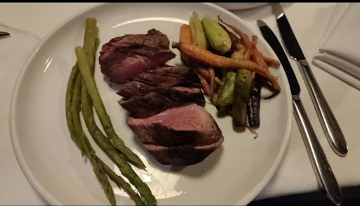 Hablando de la comida, ordenamos carne y debo decir que llegó en su punto perfecto, jugosa, bien sazonada y con una presentación excelente. Realmente superó las expectativas. Además, la carta es variada, con opciones para todos los gustos, y una selección de vinos que complementa a la perfección cualquier plato.