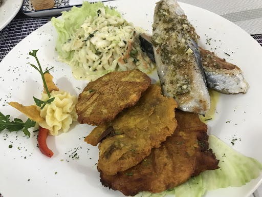 Read moreBuena opción si quieres comer como si estás en la playa pero en medio de la ciudad. Fui con mi pareja a almorzar por primera vez a este sitio y nos pedimos un menú ejecutivo cada uno, te reciben con un pan al ajillo con una fosforera, luego te traen un consomé de pescado y luego un Carite con contornos estilo playa (tostones y ensalada rayada) muy bueno, todo por 10$...