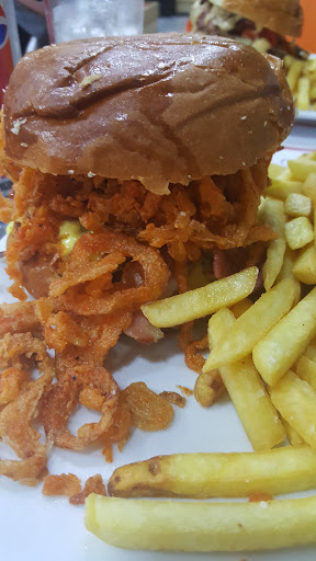 Read moreLas hamburguesas excelentes, estilo gourmet pero con opción de tener tamaño grande. Las papas tienen un sabor único por freírlas en aceite de trufas. Definitivamente muy buena opción para otro tipo de hamburguesas, precios altos entre $9-15 por hamburguesa (las grandes), sin embargo la atención no era proporcional a la calidad de la comida que ofrecen y los precios, puede mejorar; tardaron unos 40 minutos en atendernos pese a que solo éramos 3 mesas ocupadas. El ambiente es muy tranquilo, puedes escoger tú mismo tus bebidas en las neveras. Puedes aprovechar tu hora de almuerzo para comprar algo que te haga falta en este bodegón, pero no al precio más competitivo...