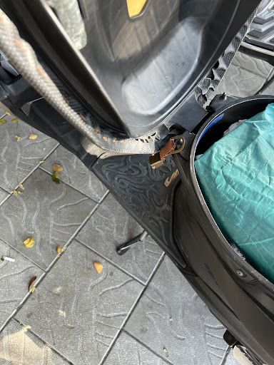 UPDATE: the shop responded saying that the staff was not involved. The business has camera around so then search the video to see who did it and where was the “security guard” while it was happening. I parked right in front of the entrance and yet it was cut. What good is the security guard if stuff is getting stolen right in front...