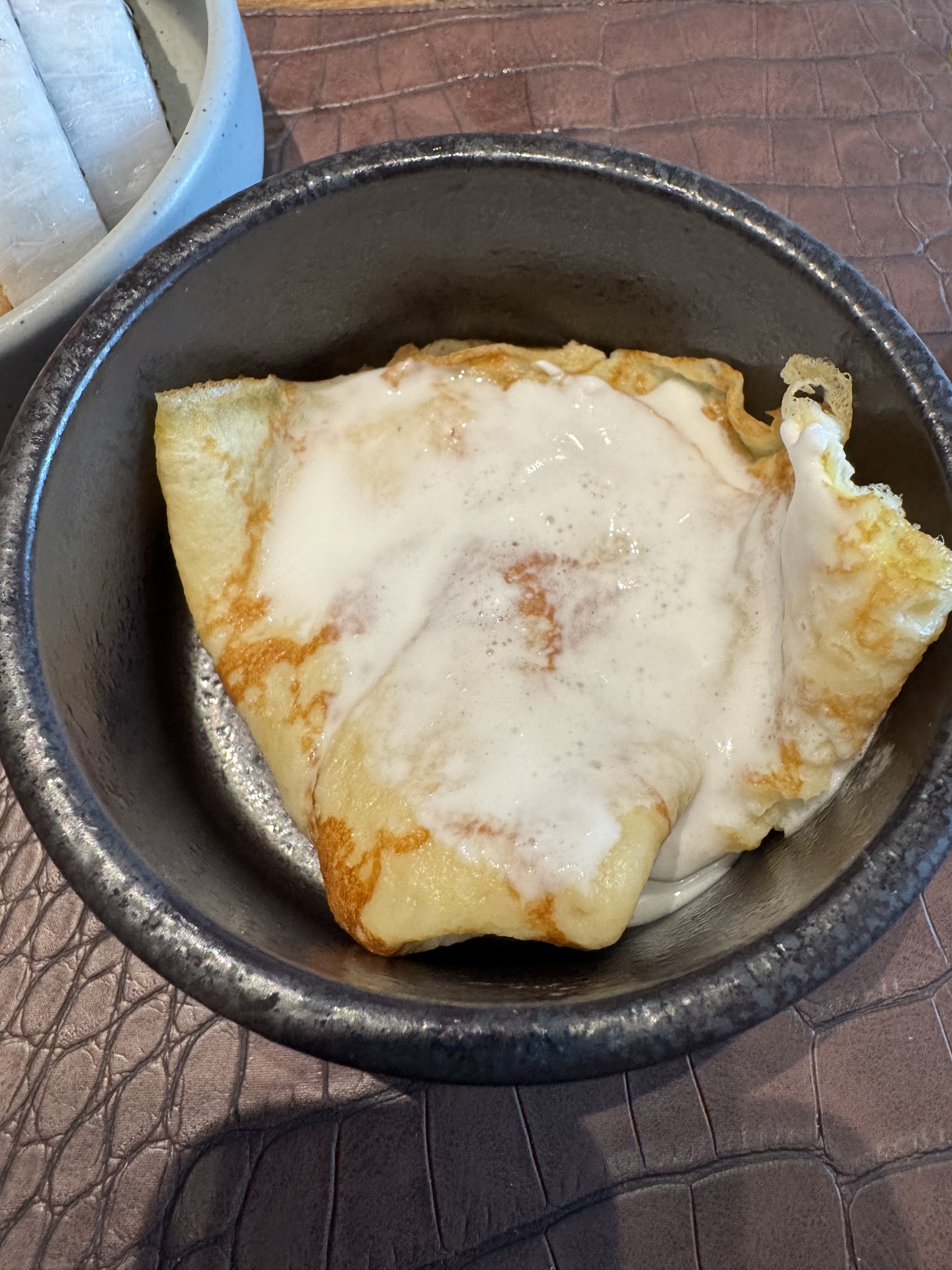 I finished up with the crêpe Suzette with coconut ice cream ….again clearly not a crêpe Suzette. There was no caramelized sugar, no butter, no orange or tangerine juice, or Grand Mariner or other liqueur. Instead, a very small plain dry crêpe, very badly presented. This one too needs accurate renaming. However, the accompanying coconut ice cream was creamy and superb. Service was very good. One final note on this buffet. You would expect, as you walk in, to see all the preparations in hot cases or hot trays, see nothing of that. Only a small, but comfortable seating area. They give you a menu to highlight what is available on the buffet and you order. And it is served, as many times as you wish. So while you cannot see what something looks like before you get it, I like this aspect in a way. Because it does avoid a lot of waste. Overall, I’d say that while I did eat lobster at two other places in Da Nang, this chili sauce lobster was the best by far. It’s turned out to be my only meal for the day. In closing, they need to seriously consider renaming some of their offerings. A dish must have an honest and accurate description of what goes on in the kitchen to finally reflect, what comes out of there and is presented….at the...