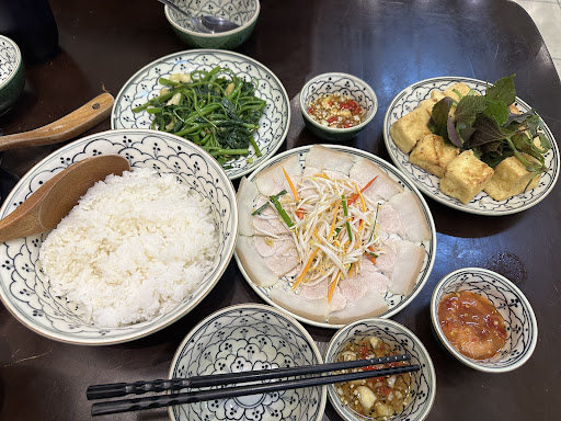 If you want to experience a proper homemade Viet family meal with affordable Viet price (not affordable touristy price 😂). This place is the one. I’m a Viet and the flavor of all the dishes that we tried here tasted like home. The food comes quite quick, about 10-15 mins. But if you order any caramelized dishes, it might take up to 20 mins. First night we paid 156k for a total of 4 dishes & 2 bowls of rice & 2 trà đá: 2 dishes of vegetables, 1 dish of caramel pork, 1 omelette, 1 big bowl of rice & 1 small one. Second night we paid 209k for what you saw in the pics: 5 dishes and 2 bowls of rice (1 big & 1 small) & 2 trà đá: tofu, pork ribs, omelette, water spinach, boiled pork (dont let the pic of the boiled pork dish in the menu fool you, it’s so small 😂 the size of everything else is alright). I would recommend getting 1 big bowl of rice first to see how far you can go, then if you need more, you can order more. It will come in 2 mins The trà đá is also special. They used roasted black beans water, it tastes refreshing and good for your health too The only drawback is that the menu is in Viet 😂 There are only wet wipes on the table but if you ask for tissues, the staff will...