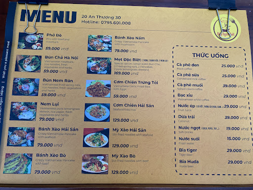 The menu is diverse, featuring a variety of classic Vietnamese dishes such as phở, bún chả, cơm gà, and fresh spring rolls. Each dish is carefully prepared with fresh ingredients, and you can really taste the difference. The flavors are rich but well-balanced—not too oily or overly seasoned, just right.