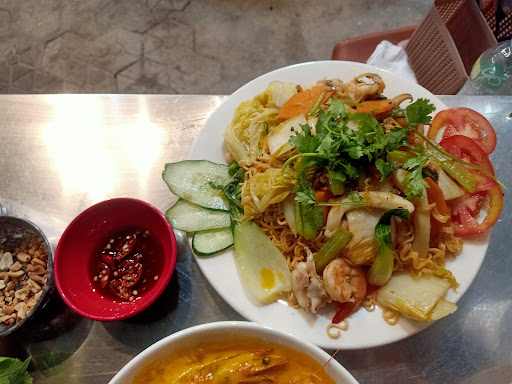 The food is really spicy, I have to say, you can see by looking at my photos. My girlfriend is a good spicy eater but she also thinks that the dishes are too spicy, which somehow takes away the deliciousness of the flavor of the dish. In return, the seafood is fresh and delicious, and the preparation is also quick. I am someone who rarely eats raw food, but after eating raw food at this restaurant, I found it delicious and did not have a stomachache. The restaurant space is quite large and has many tables, the restaurant also has tables inside but I recommend sitting outside on the sidewalk because it is more airy. The prices at this restaurant in particular and in Da Nang in general are really cheap. We were surprised by the prices when traveling here and this restaurant was the same, my bill here was only about 100,000 VND per person but there was a...