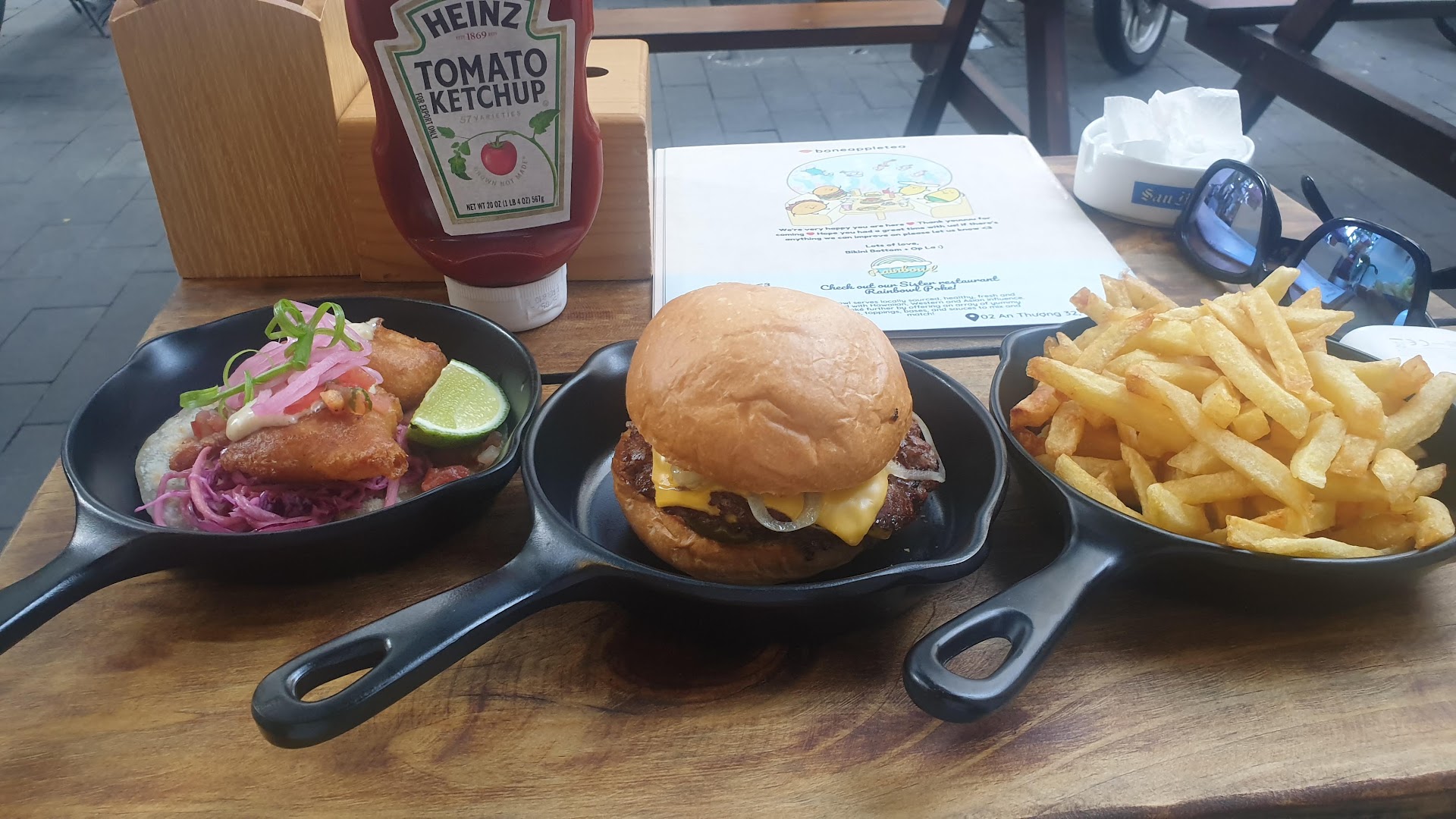 Read moreTo err is human , to forgive divine. I was keen to visit the Famous Bikini Bottom Express, as i had seen stuff on YT and every now and again , crave some western food. I visited with a mate, on a fairly busy night and ordered a couple drinks and smash burgers. So time was ticking along, and the young guy serving would pass by and say , "won't be long sir," and we finished our drinks. We ordered more drinks, and asked how far away the burgers were, and he hurried to the bar and we could see some debating going on between the staff, and he hurried back asking me to confirm my order. I asked him outright, if he had somehow lost my order, in which, to his credit, admitted there had been a mistake made somehow, and he apologised profusely and thanked me for our patience and would hurry the food along. Things sometimes happen, and life doesnt always go to plan. The young guy was smart to admit an issue, and kindly informed us the first drinks will be free. It was unfortunate that it happened on an occasion when we were both crazy hungry, but all i take from the experience is how well the young staffer handled the situation, with the utmost of care and sensitivity. His charming demeanor removed all the annoyance from our minds, and welcomed the experience as sometimes SHIT HAPPENS. Ok....BTW, the smash burger was excellent. The fries were excellent. I look forward to moving to Da Nang and regularly revisiting this fantastic eatery, as i can totally understand why its reputation is so good. When they get it wrong, they still manage to totally get...