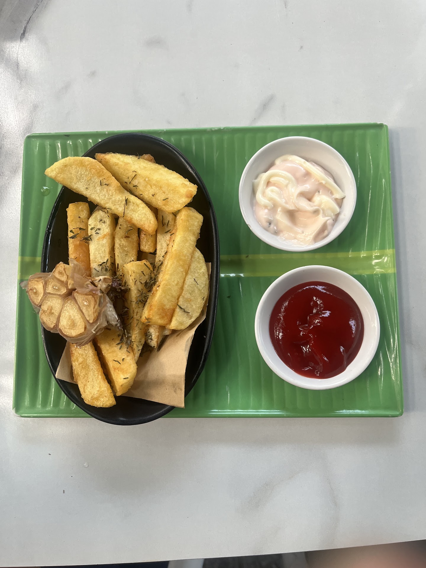 French fries (3.5/5) The french fries was nice, it was thick and crusty. The only downside is the lack of seasoning, think they didnt toss the french fries and also it gets abit oily when its cool. The sauce also need some upgrades. The garlic was a nice touch, could char the garlic slight more to better bring out the taste.