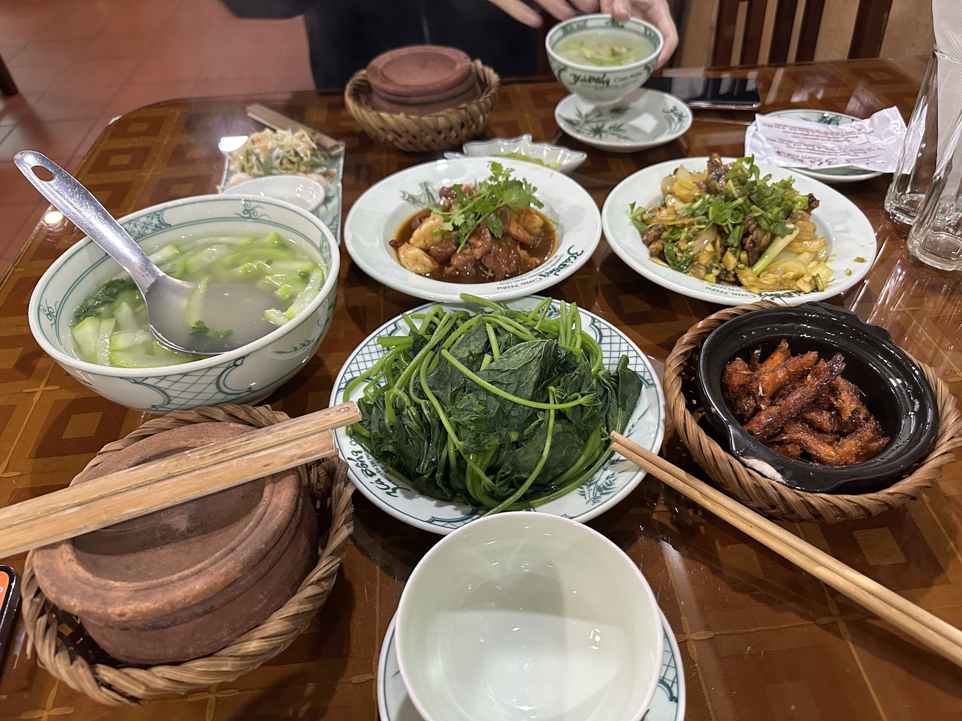 Luôn đông khách những vân phục vụ khách tạm ổn và không để khách chờ quá đợi lâu, giá cả khá ổn Món cá bống kho hợp khẩu vị, rau bí xào có thêm vài lát tốp mỡ béo béo thơm thơm, canh cua mòng tơi khá hấp dẫn, thịt luộc mắm tôm chua ngon, chả ram tôm ổn, cơm niêu cháy vàng giòn. Nhân viên & anh quản...