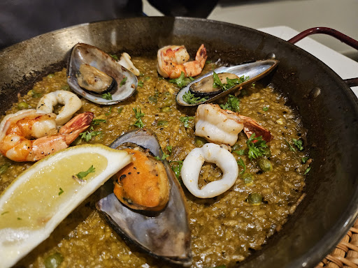 Thực đơn tập trung vào các món Âu như paella, hải sản nướng, bánh mì khai vị… Một số khách đánh giá món ăn ngon, đặc biệt là paella và các món hải sản. Tuy nhiên, cũng có phản hồi trái chiều về chất lượng món ăn – có người cho rằng đồ ăn không đặc sắc, thậm chí bánh mì miễn phí trước bữa ăn là món ngon nhất. Điều này cho thấy trải nghiệm có thể khác nhau tùy khẩu vị và kỳ vọng.