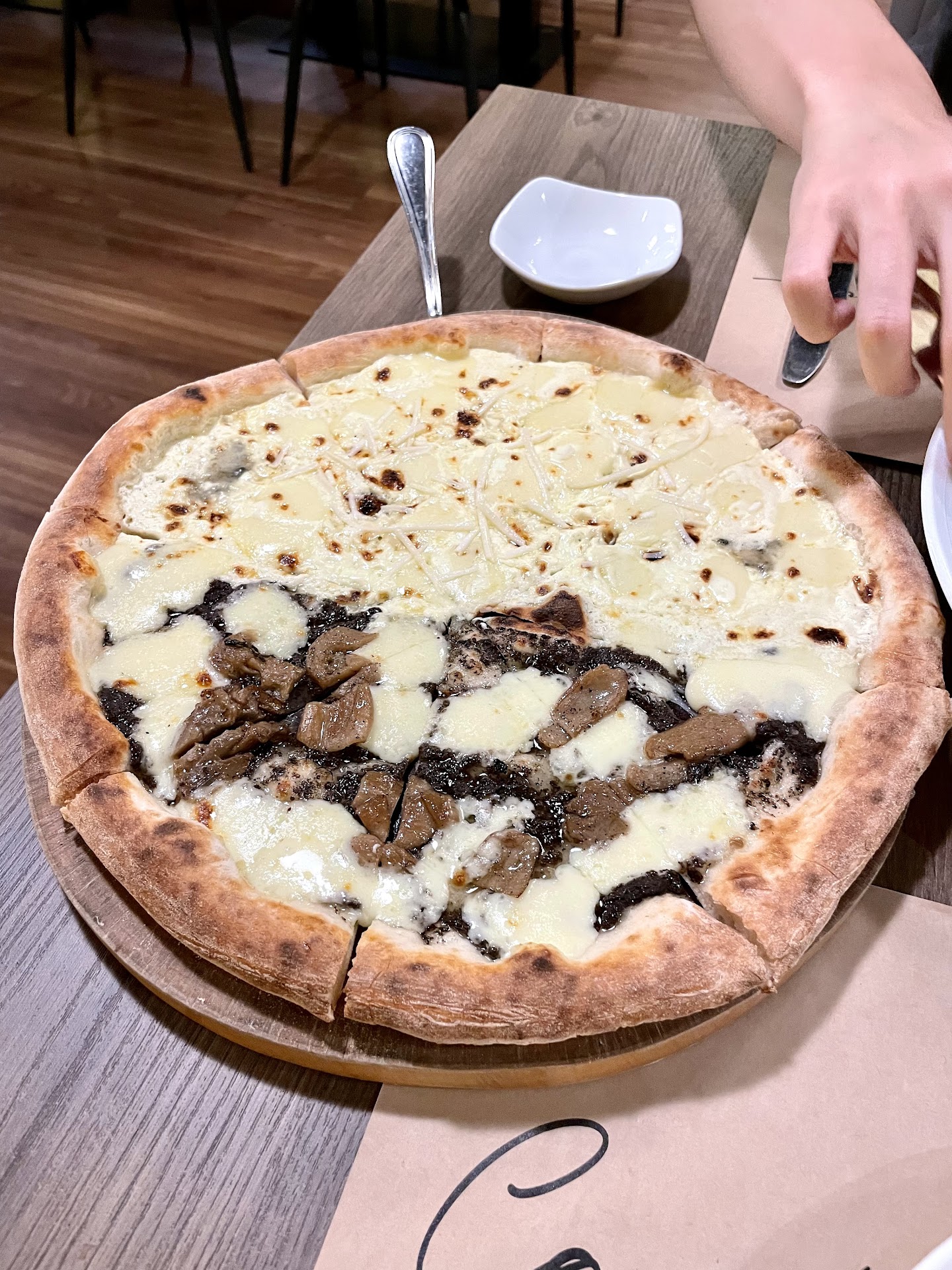 The pizza was pretty good. We shared a Diavolo. Cheese, crust and sauce were good. As another reviewer mentioned, the meat was added cold after the pizza came out of the oven and was sliced. To warm the meat up, the pizzaiolo briefly ran a torch over it. That’s different from what I was expecting and I think the meat would have been better had it gone in the oven, though it was “fine.” The pizzaiolo brought the pizza to the table with a smile. Credit to the pizzaolo for efficacy, skill and service orientation, even if the preparation methods are different than what I would expect.