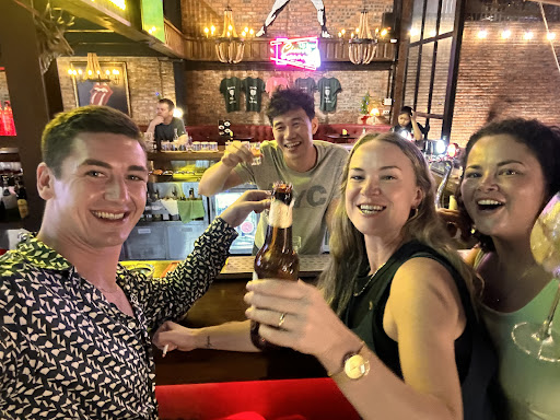Read moreThis is another western/expat themed bar. There are locals here, which I enjoy that it’s a good mix. Not just salty old expats. Food Is par for the course: good prices. Good beer selection. Very cold beer and always served in a chilled glass. Live music on the weekends by an extremely talented American. He takes requests and he doesn’t disappoint. I feel like the more he plays here, the more people will come. The bartenders are very kind and do a good job of keeping your glass filled. The only gripe is that there is zero airflow. If you don’t have a fan, which I saw only 2, you literally melt in here. Like sweat buckets kind of heat and humidity. I understand they are trying to keep costs down Which in turn keeps prices lower. However the owner should install a large overhead fan to keep air moving. Or they should install a large draft fan by cutting an opening in the roof which would in turn displace the hot, trapped air that builds after a day of heating the metal slat roofs overhead. The way it’s built, the heat is trapped and just continues to build as the room fills with customers. Fix this issue, and customers will certainly stay and spend more money…enough to offset the costs in a short...