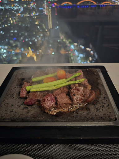 Read moreThe steak cut on a hot stone plate is juicy and soft in texture. It becomes tough when it cools down, but it is so delicious that you can eat it up quickly without having time to cool down. In the evening, the view of the Han River and the city through the glass windows is so beautiful and the atmosphere is great. The staff is very friendly and responds quickly. The stir-fried morning glory is highly recommended. It is a large portion and very delicious. I also like the sweet and sour taste of the pinkish...