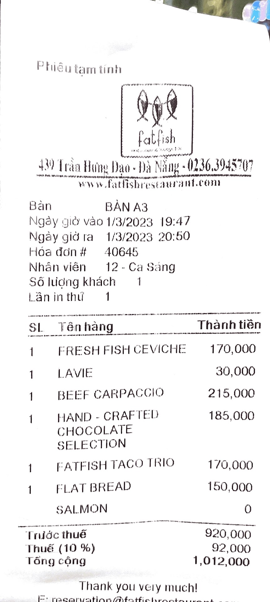 This review is not meant to disparage Fatfish in any way- i fully respect its legacy in Da nang, but I do hope that some improvements can be made to the...