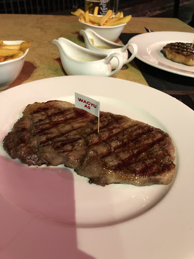 Went for the 300 gr striploin Japanese wagyu with A5 scoring/marveling, which they charge 3.000.000 VND for or (100 Euro plus). I ordered it medium and it came almost well done while my dad‘s 200gr steak was actually medium. I told the waitress, who did a great service btw (but due to the manager‘s behavior I rated service with 1 star), and she went off with the steak and the manager returned with it saying that this is medium and it doesn’t look like my dad’s steak because it was thinner.